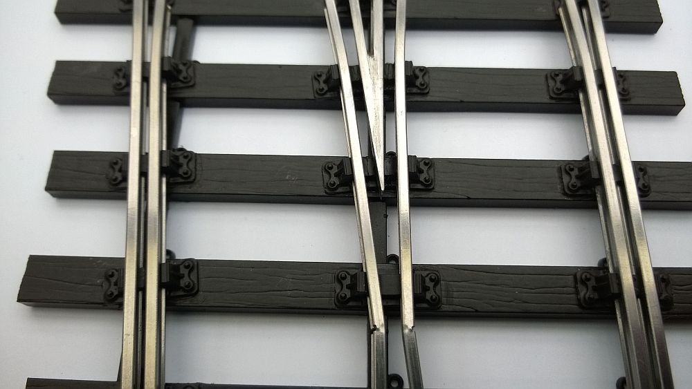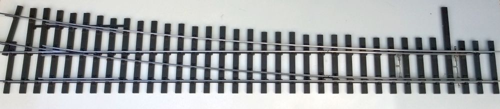 Modeller's Information - to plan your layout, these are the sizes for the various turnouts measured from centre of fishplate to centre of fishplate. The size can be reduced by 1" (25mm) if 1 of the 2 standard sleepers is removed after the blade rail end, and a further 1" (25mm) if no standard sleepers are used at the nose end. 5000mm Finescale left or right hand = 31.5"